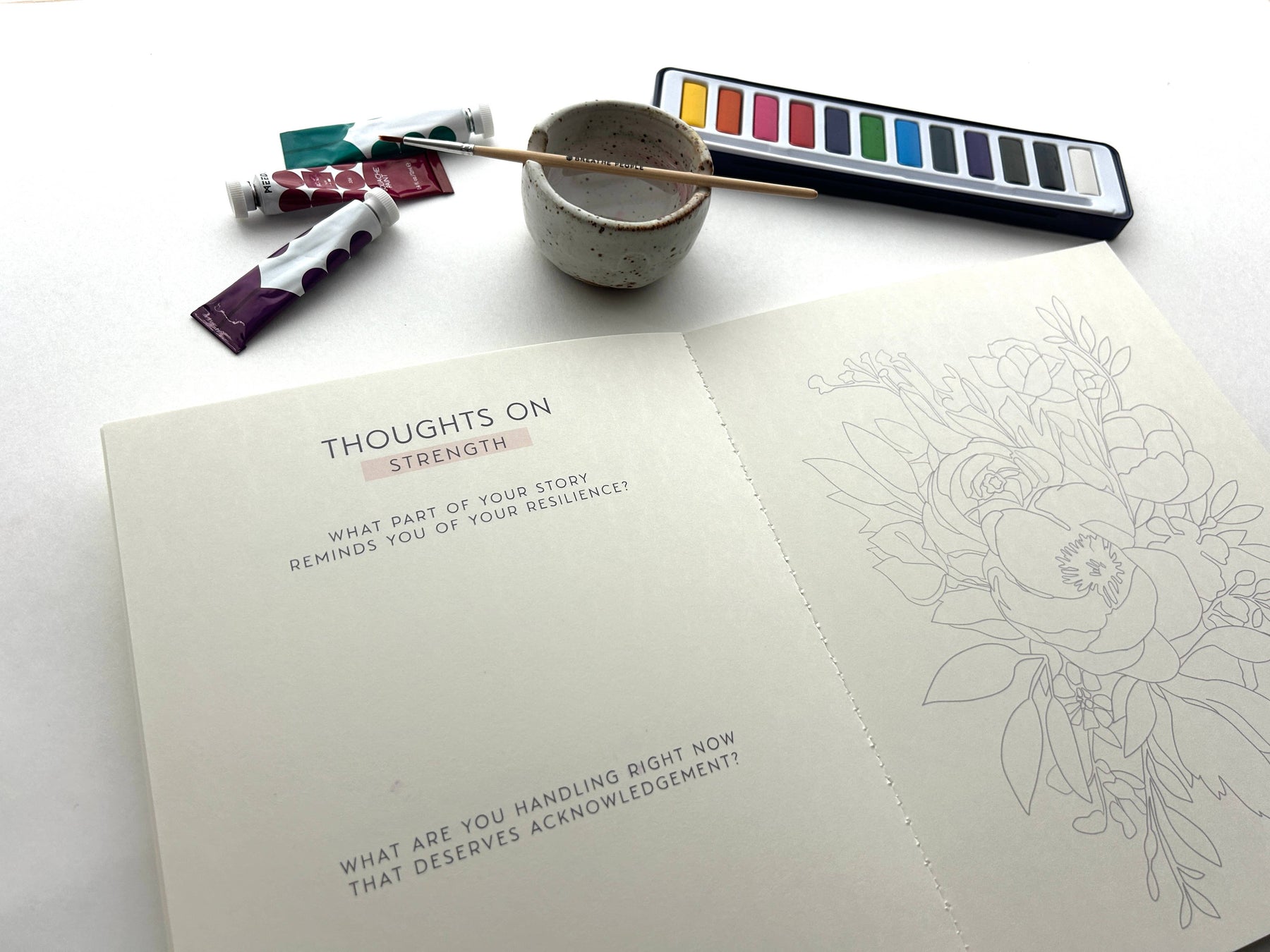 Product Features: 16 original full-page designs created for calming, meditative coloring or painting. Thoughtful reflection prompts integrated into the artwork experience QR code access to optional guided meditations — for a full sensory reset Printed on thick watercolor paper that holds watercolor, gouache, pastels, and markers Perforated 8x10 pages.