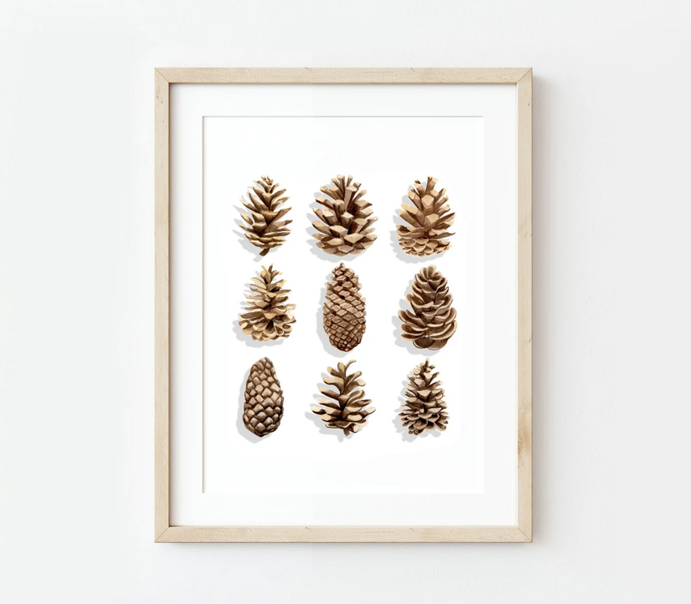 Pinecone Watercolor print by Emily Sheridan of Northhouse Creative Co, local to Traverse City, MI.