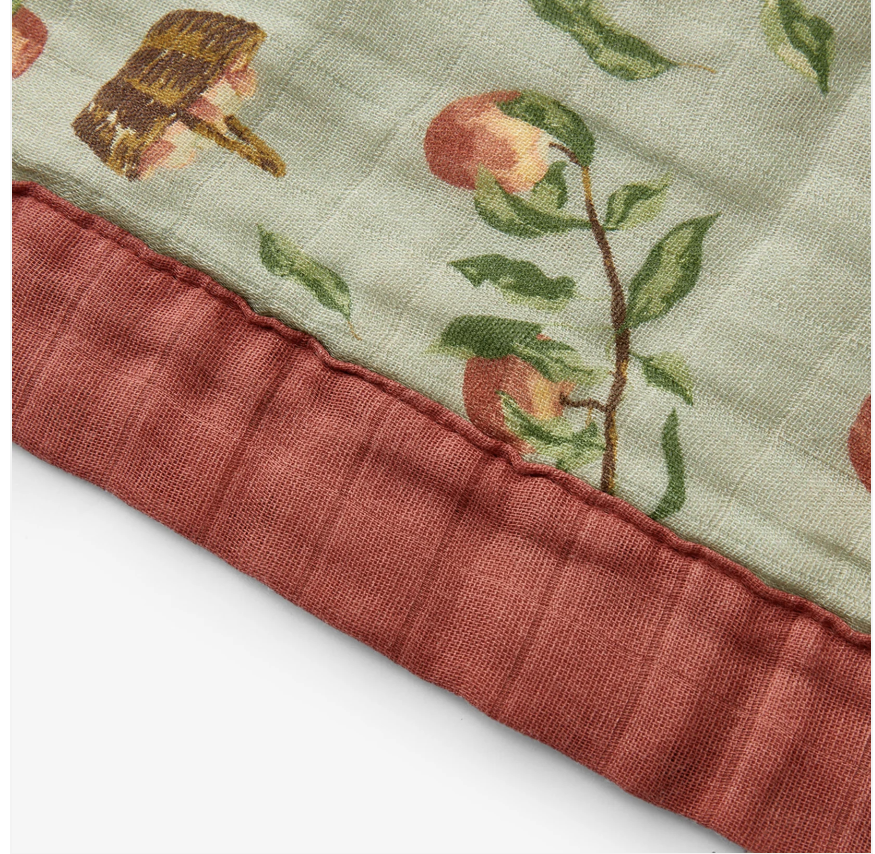 The ultimate in comfort, our generously sized Big Lovey Muslin Blanket in the Apple Orchard print allows for extra snuggles and cuddles.