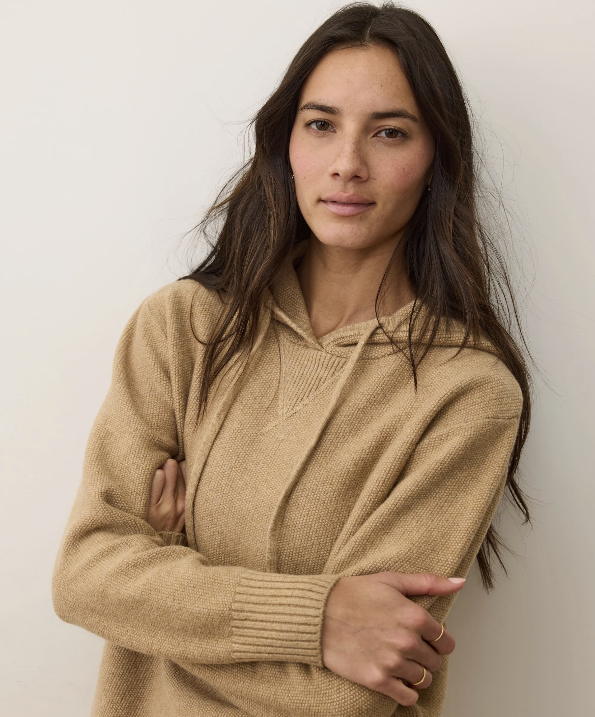Say hello to the top half of our new, amazingly elegant knit set. No joke, you will put this on and automatically expect someone to refill your drink in a chalet. That's basically how it got its name. Of course it also happens to be an elevated sweater hoodie that brings class and cuteness to nights in or days out. But our eye's set on the full set. And for someone to refill this champagne…