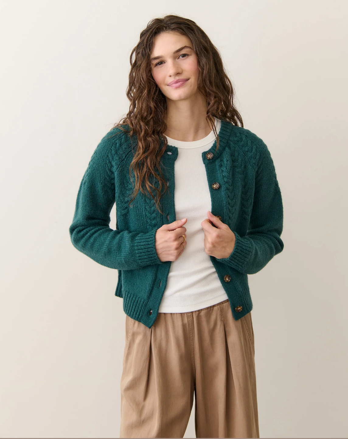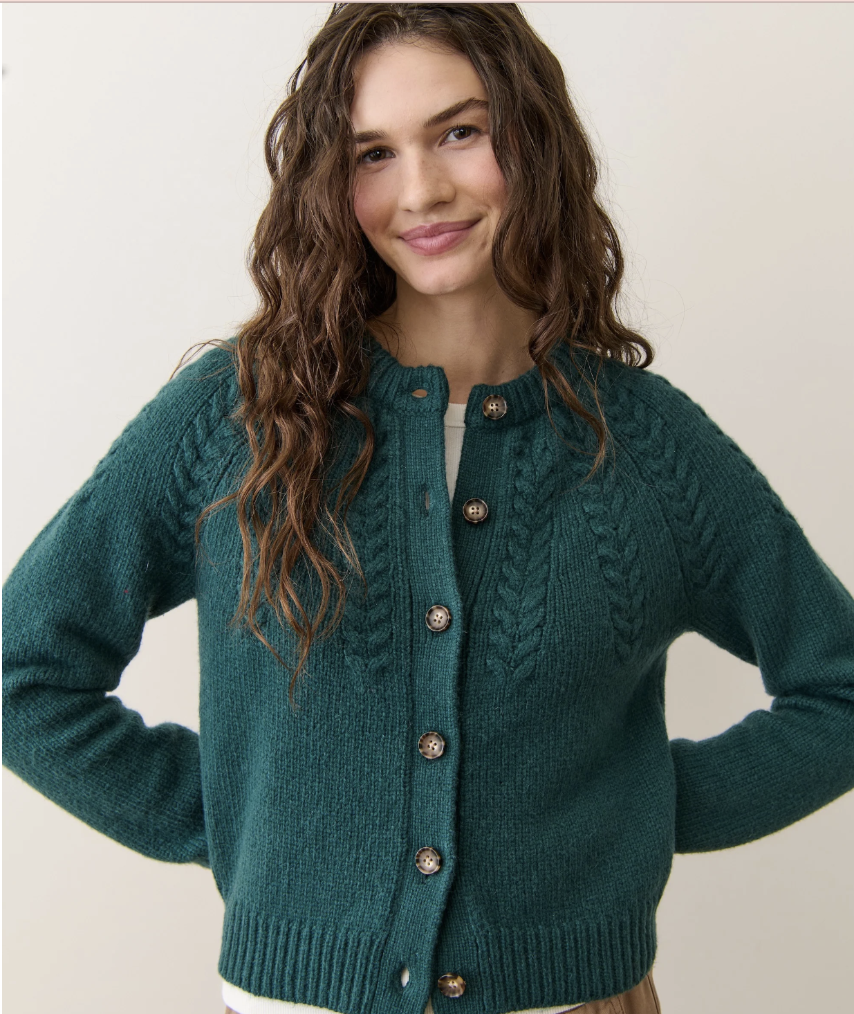 It’s the classic cable knit cardigan, with a new spin that will get you a lot of, “Ooh, where did you get that?”