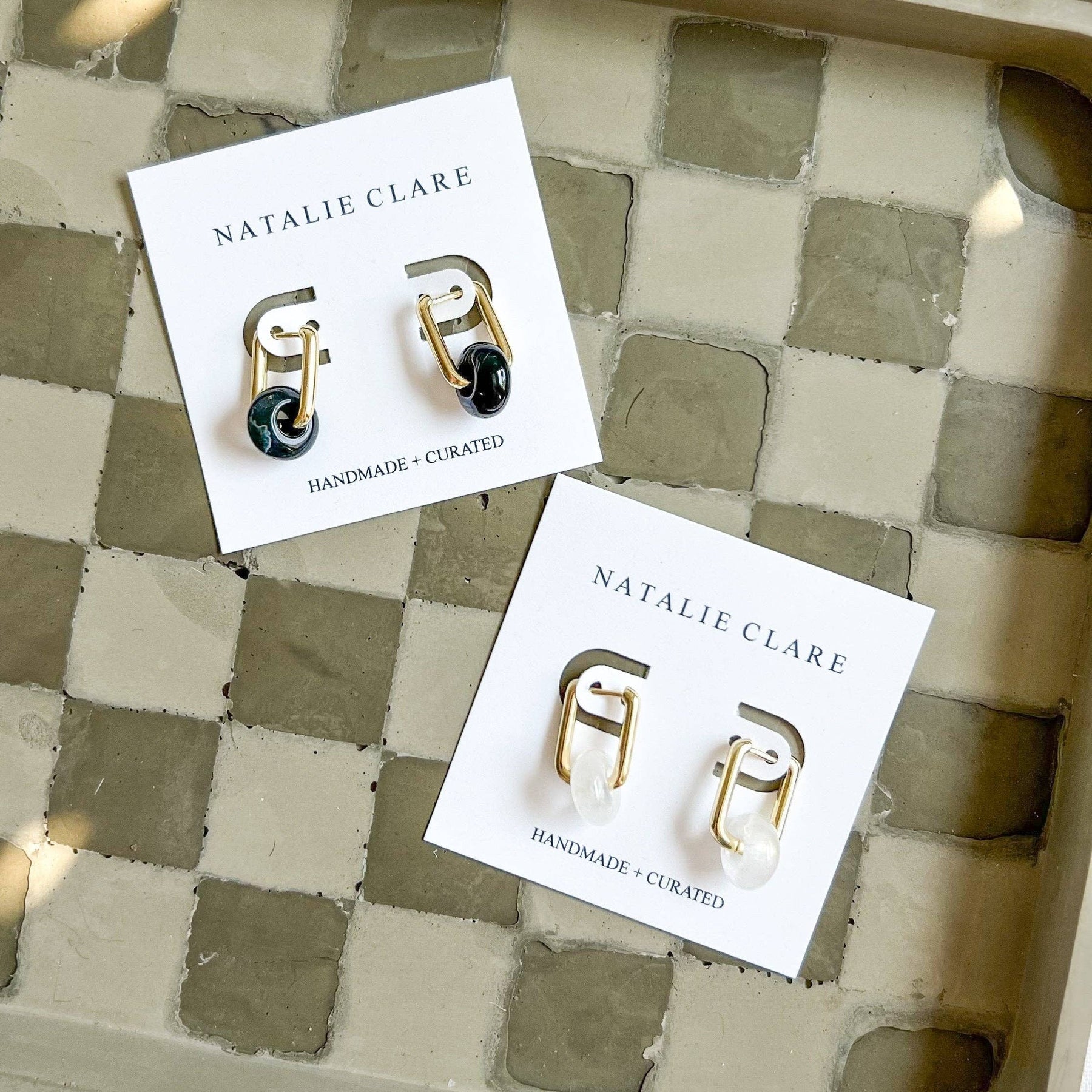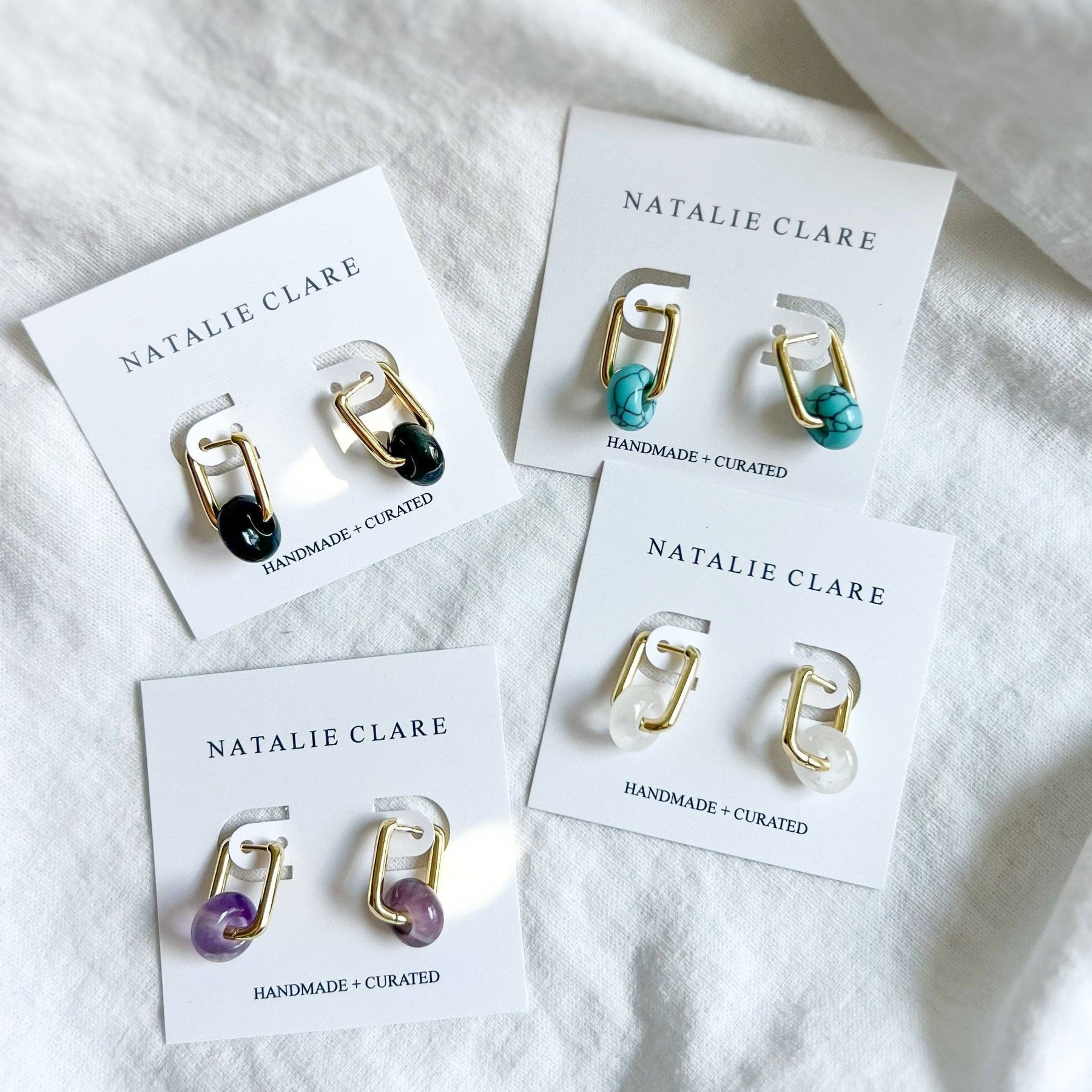 Discover the natural beauty of our Crystal Quartz Huggie Hoops. Made with natural crystal quartz rondelle beads and 18k gold plated brass, these huggie hoops match everything. Slight deviations in color is expected with natural stones.