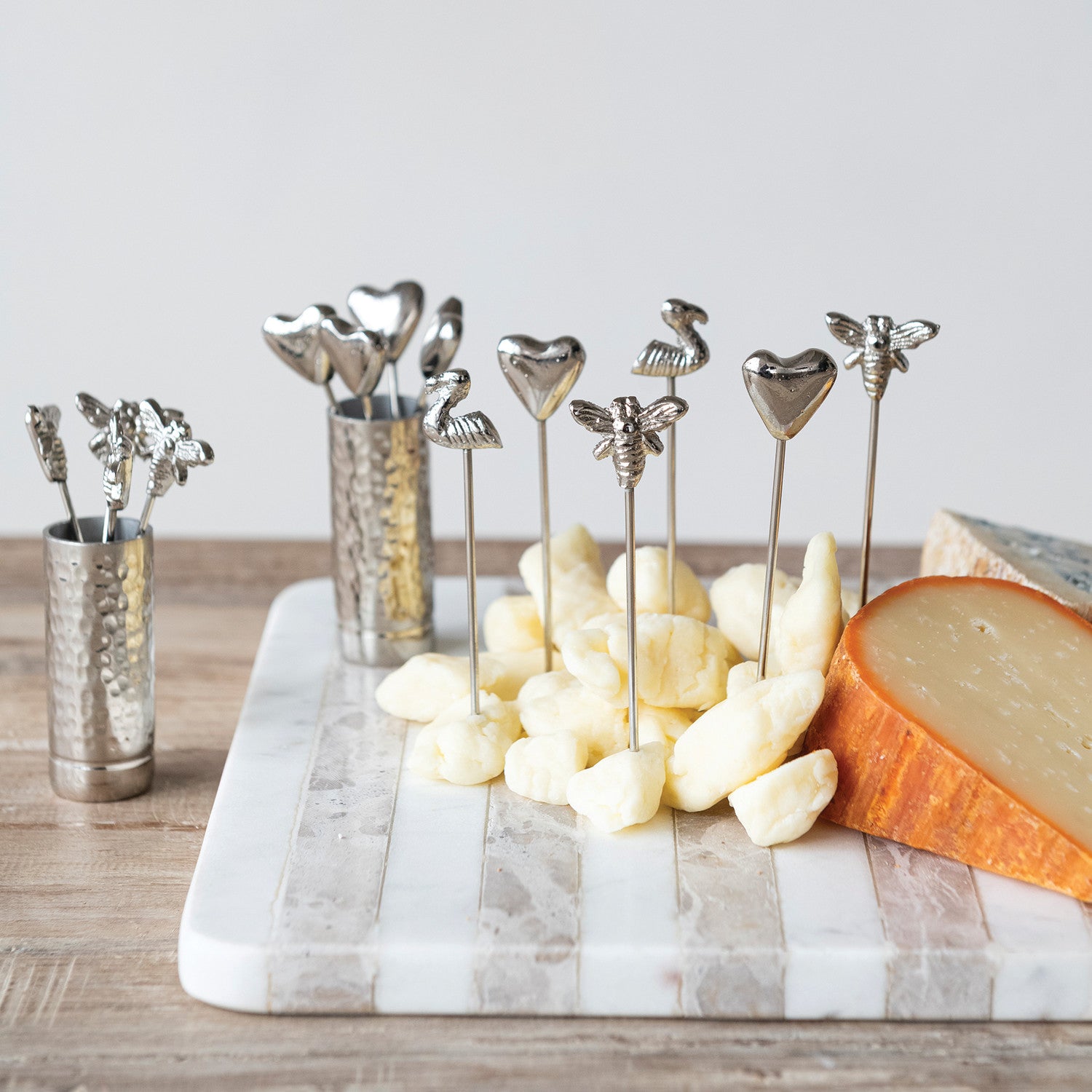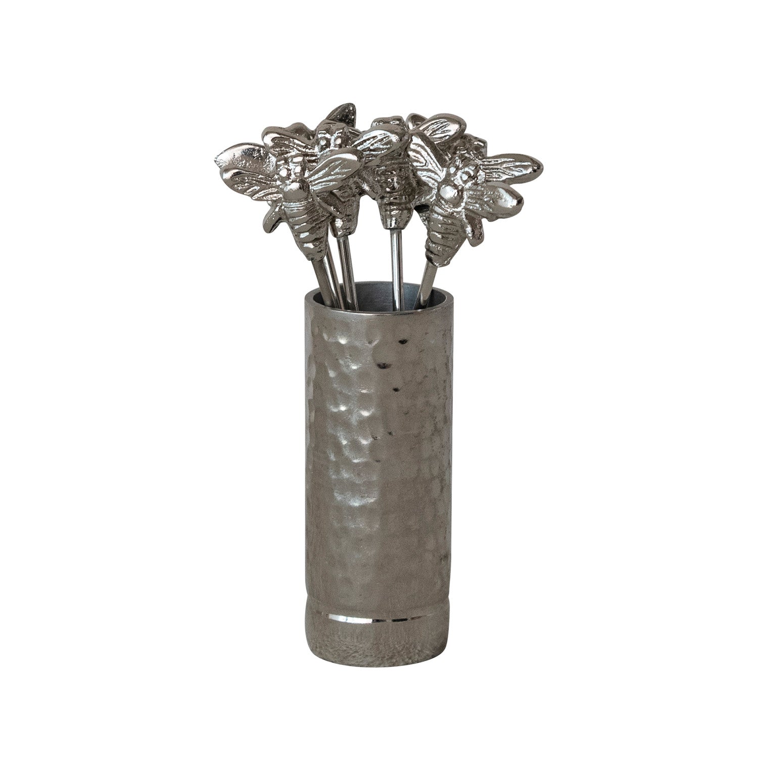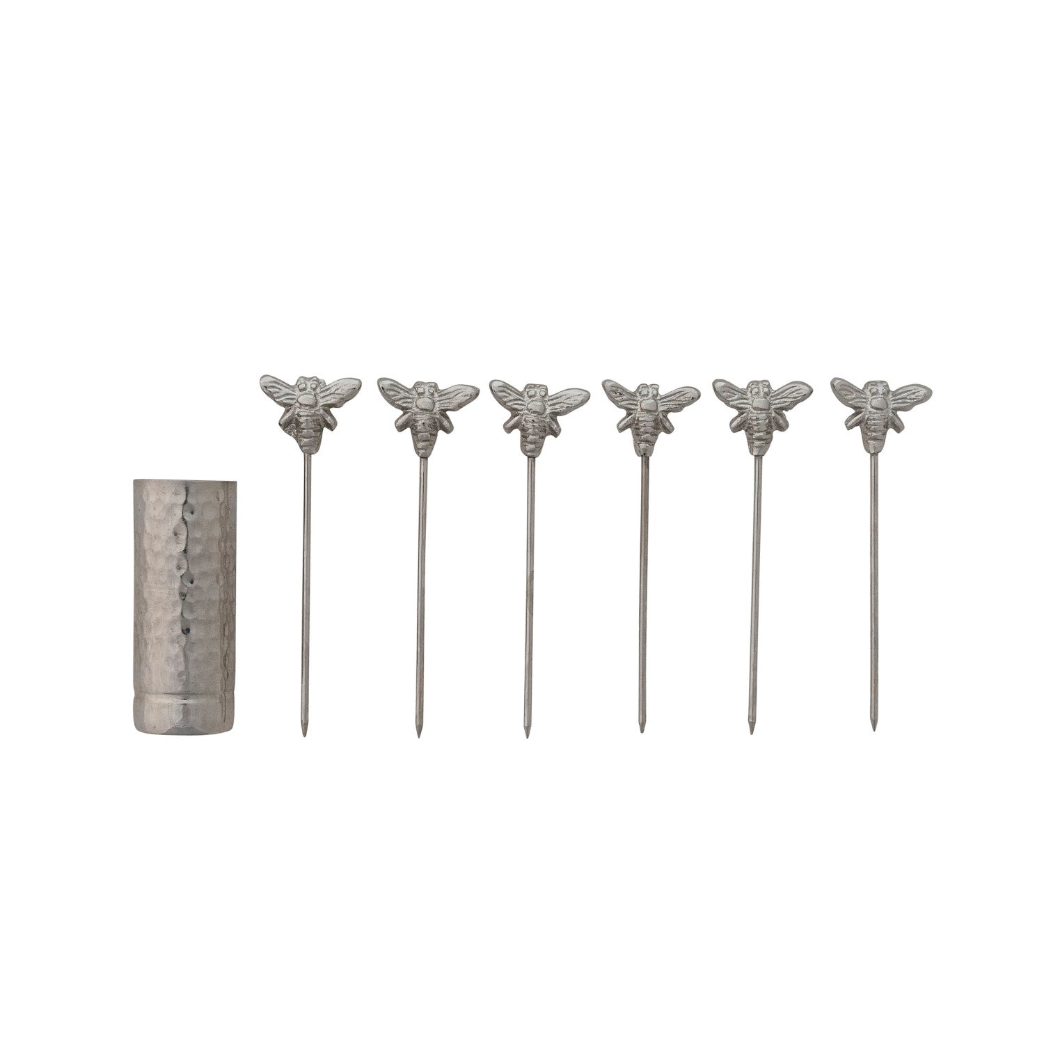 Aluminum Holder with (6) Stainless Steel Appetizer Picks with Bee Handles, Boxed Set of 7