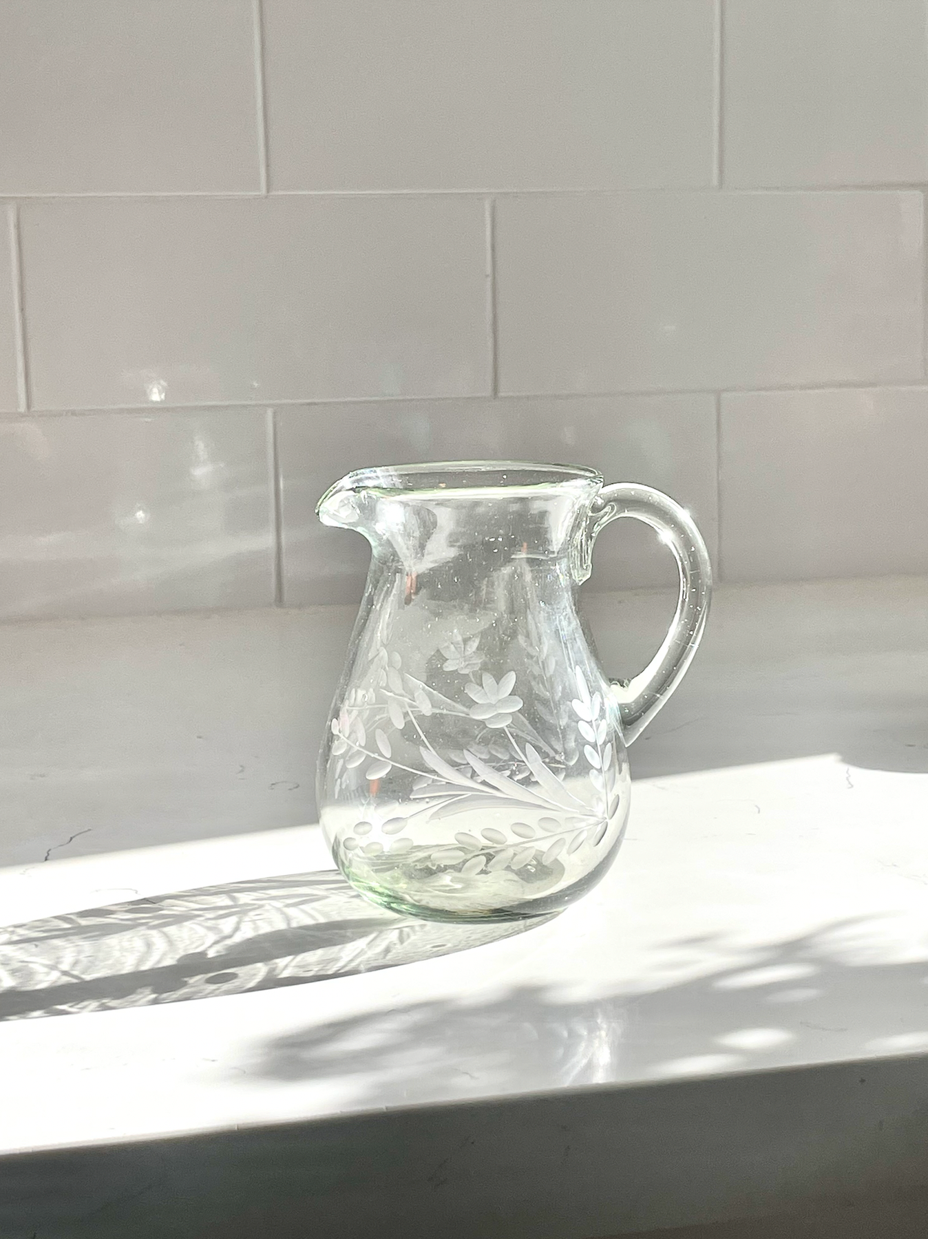 Hand-Etched Blown Petite Pitcher