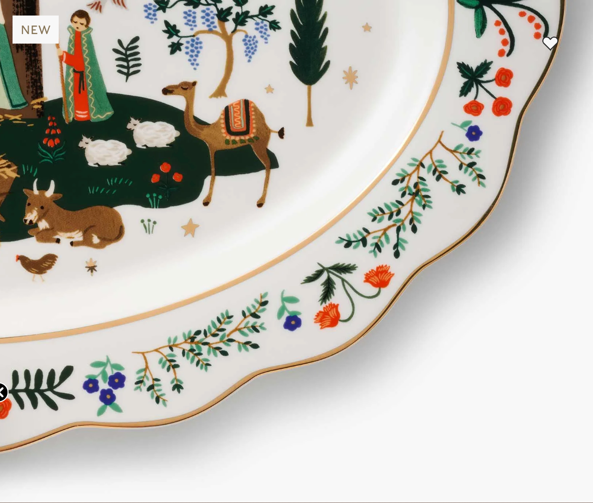 Perfect for holiday gatherings, this porcelain tray features intricate, Nativity-inspired illustrations, metallic gold accents, and a gold-painted edge.