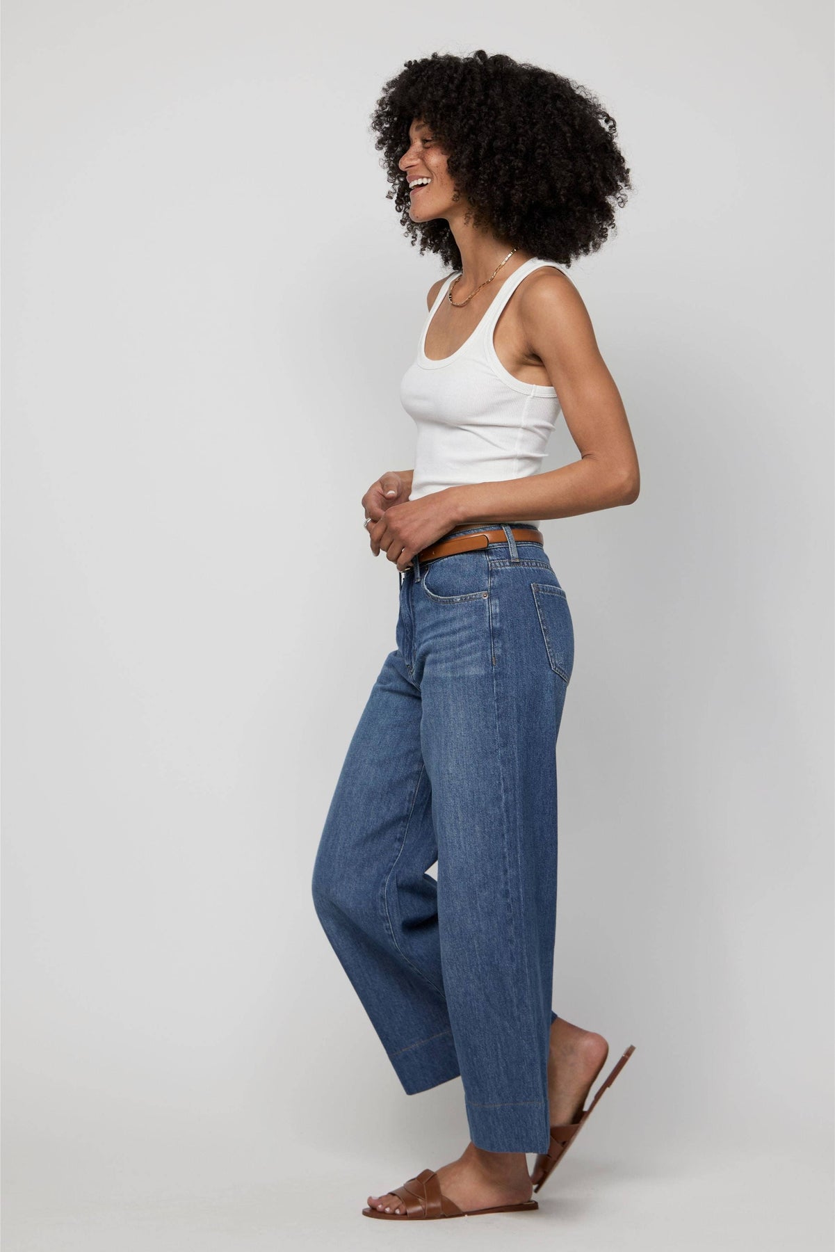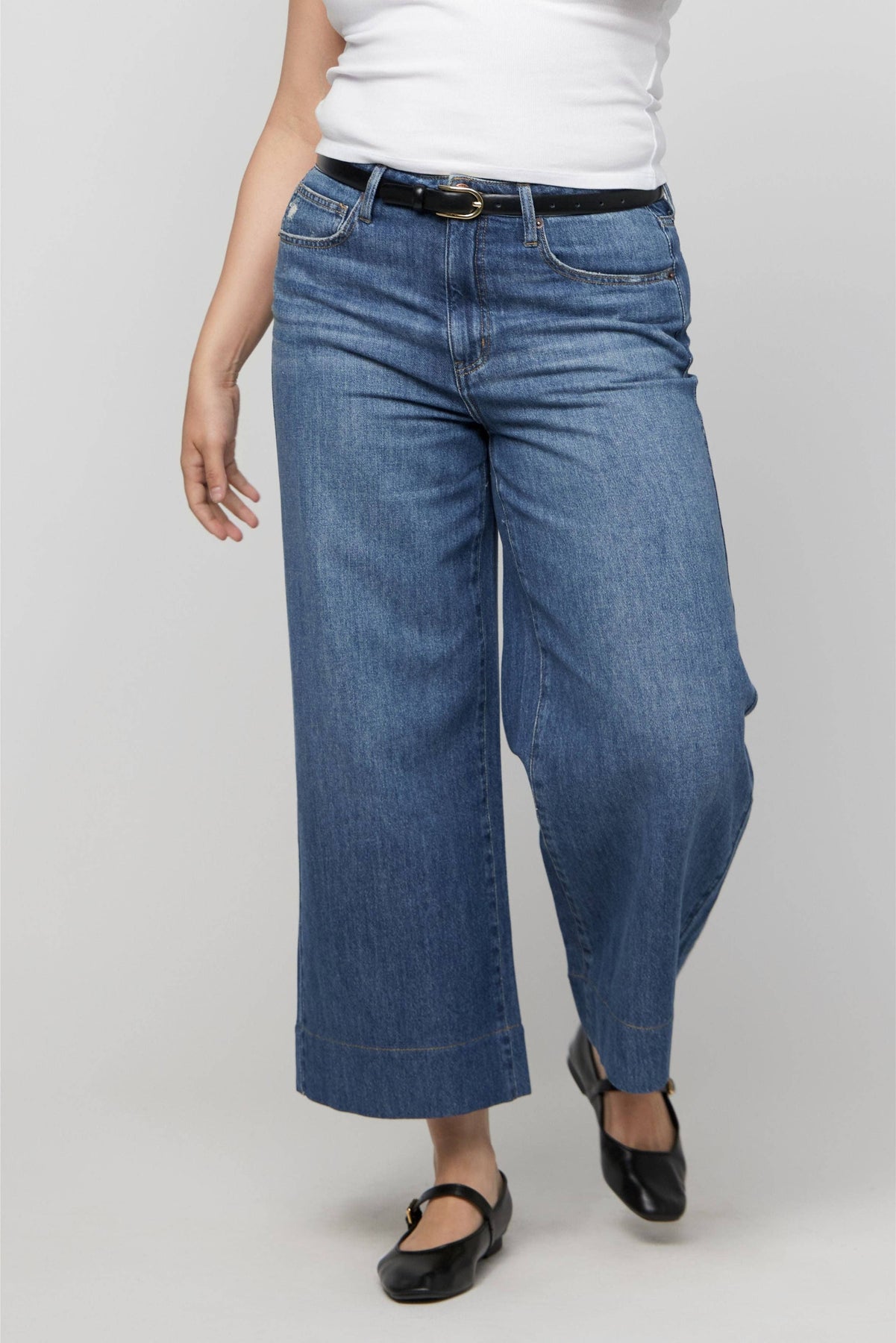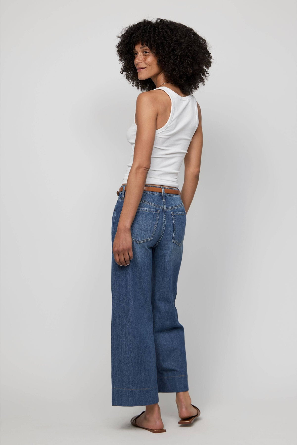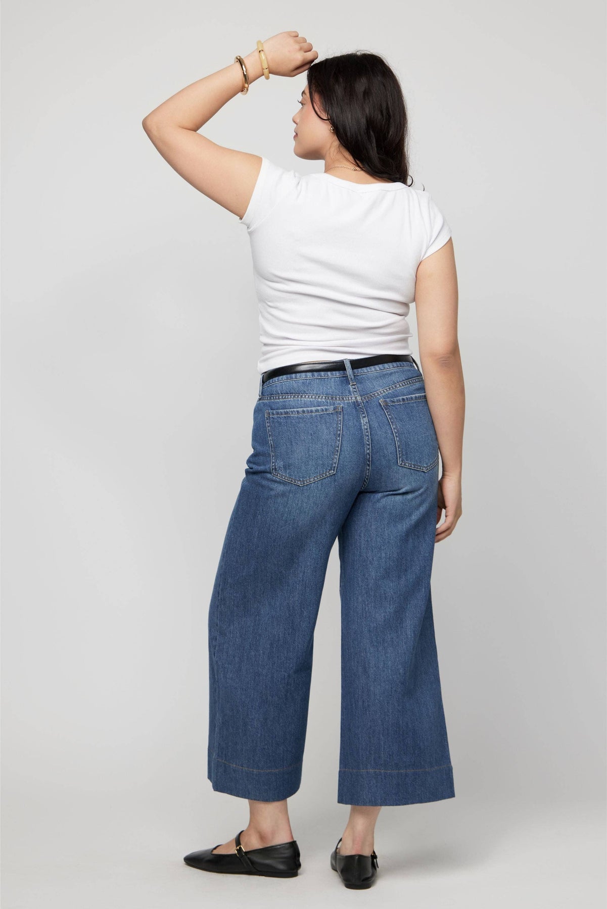 PRODUCT DETAILS • High-rise with a way-wide leg, ankle-length cut, and extra soft feel. • No-stretch, super soft, and lightweight recycled cotton blend. • Sculpted around the butt with super-wide, perfectly balanced, and height-giving flare. • Rise 11" Leg Opening 24" Inseam 26.75" •
