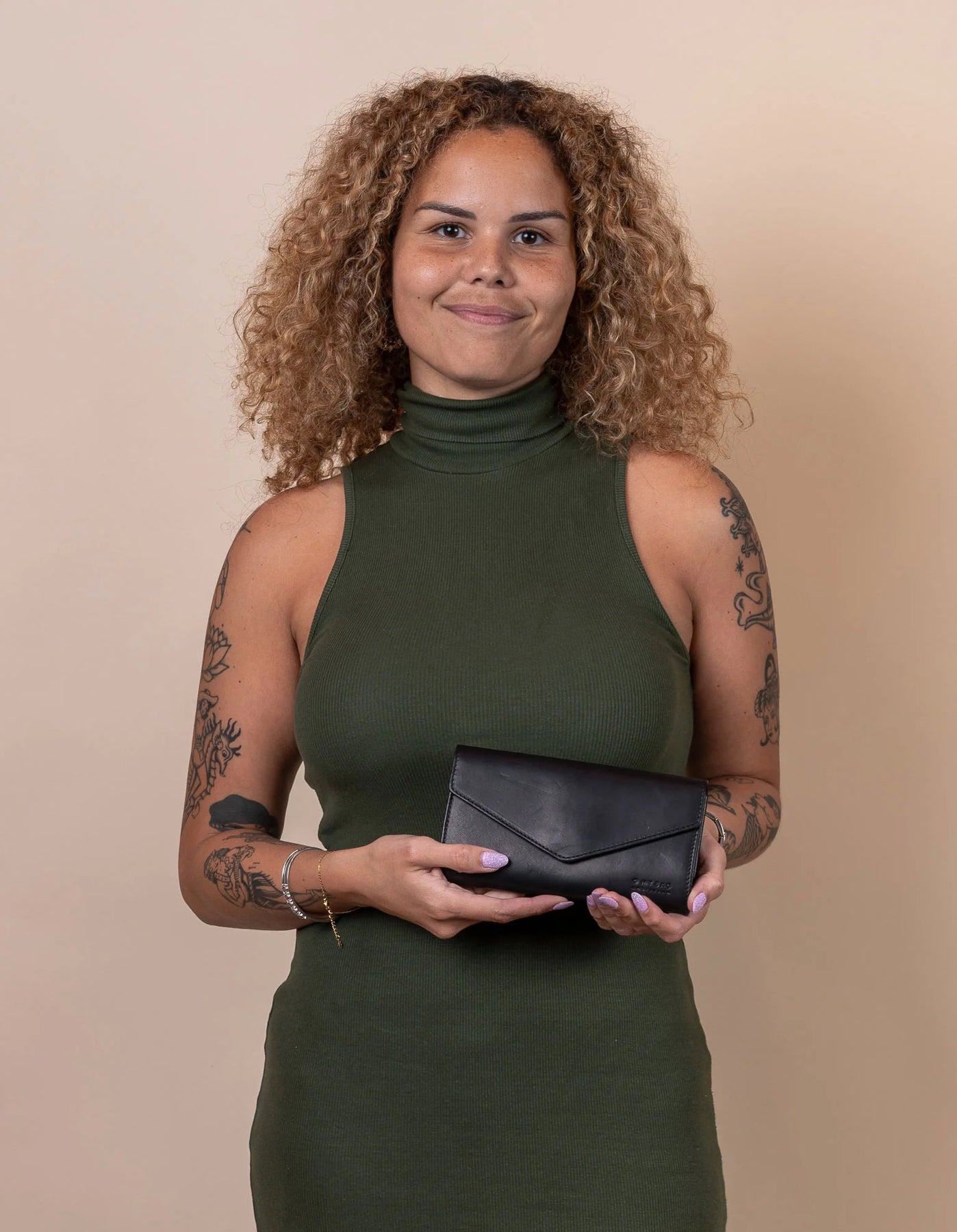 For all those who wish to stay organized: meet our Envelope Pixie! This slim envelope-style wallet is secured by a snap magnetic closing and perfectly tailored with multiple compartments, card slots and slip in pockets. Envelope Pixie’s roomy interior neatly organizes all your essentials, without taking up too much space in your bag. The envelope shape gives Envelope Pixie a timeless but cool look. Toss this pouch in a tote or carry Envelope Pixie solo as a clutch!